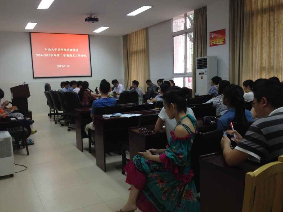 2015年7月10日下午,药理学系召开了2014-2015学年第二学期期末工作会议,系主任胡长平教授、副主任彭军教授和全系师生参加了会议。 系主任胡长平教授首先对本学期各项工作做了总结。…