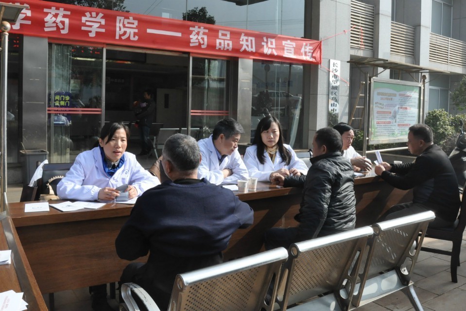 11月17日上午,风和日丽,药公司50余名研究生和研究生导师来到望城区乌山中心卫生院,开展“我与导师在一起”暨走进社区开展“安全合理用药”宣传活动。活动现场,高年级研究生和导师们在一起,耐心细致地给前来咨询的群众解答疑难,其他员工则携带自己编辑印刷的《走进社区、服务群众,冬季常见病的防治与用药知识宣传》小册子,走家串户分发和宣传。