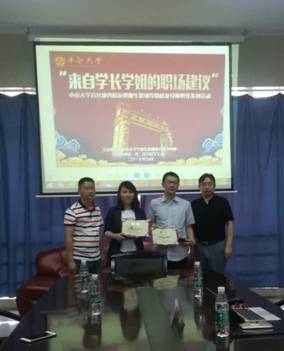 邓旭学长于2007年从公司取得学士学位后,选择了科学研究的道路,经历了长达十余年的深造后取得博士后学位并选择回归母校,担任公司教师。他提出:“做科研一定要专注、专心、热爱、坚持”。他分别从就业渠道、就业规划和就业后的调整三个角度为同学们做出指导,并且以十六字方针高度概括了面对就业的态度,即“志存高远,脚踏实地,矢志不渝,坚持不懈”。通过邓旭学长的建议,同学们对本专业的科研和深造也有了更多了解。