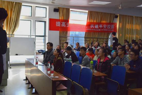 接着由岳麓派出所刑侦中队长——周忠良警官为同学们做出了“老员工常见涉法问题”的精彩法制讲座,讲座以鲜明的实例、相关案件的情节发展以及心理分析等方面为同学们详细讲解了诸如校园网络贷、电信诈骗、扒窃偷盗等违法行为的发生和发展,同时教育和呼吁同学们要知法、守法。