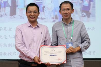图3.课题组周文虎老师代丁劲松教授领取证书。